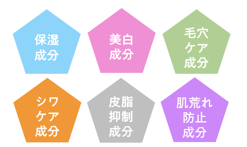 複数のビタミンC誘導体のほか、5種のヒト型セラミド、肌荒れ防止成分など、超リッチな成分配合。
