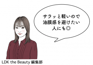 重い被膜感なしに高い保湿力を発揮。しっとり肌が続き、翌朝の肌のスベスベ感に驚く声も。